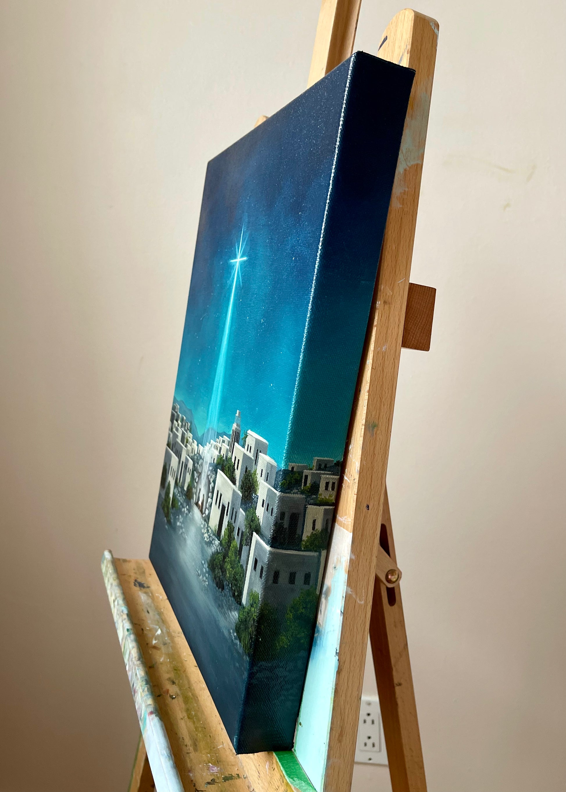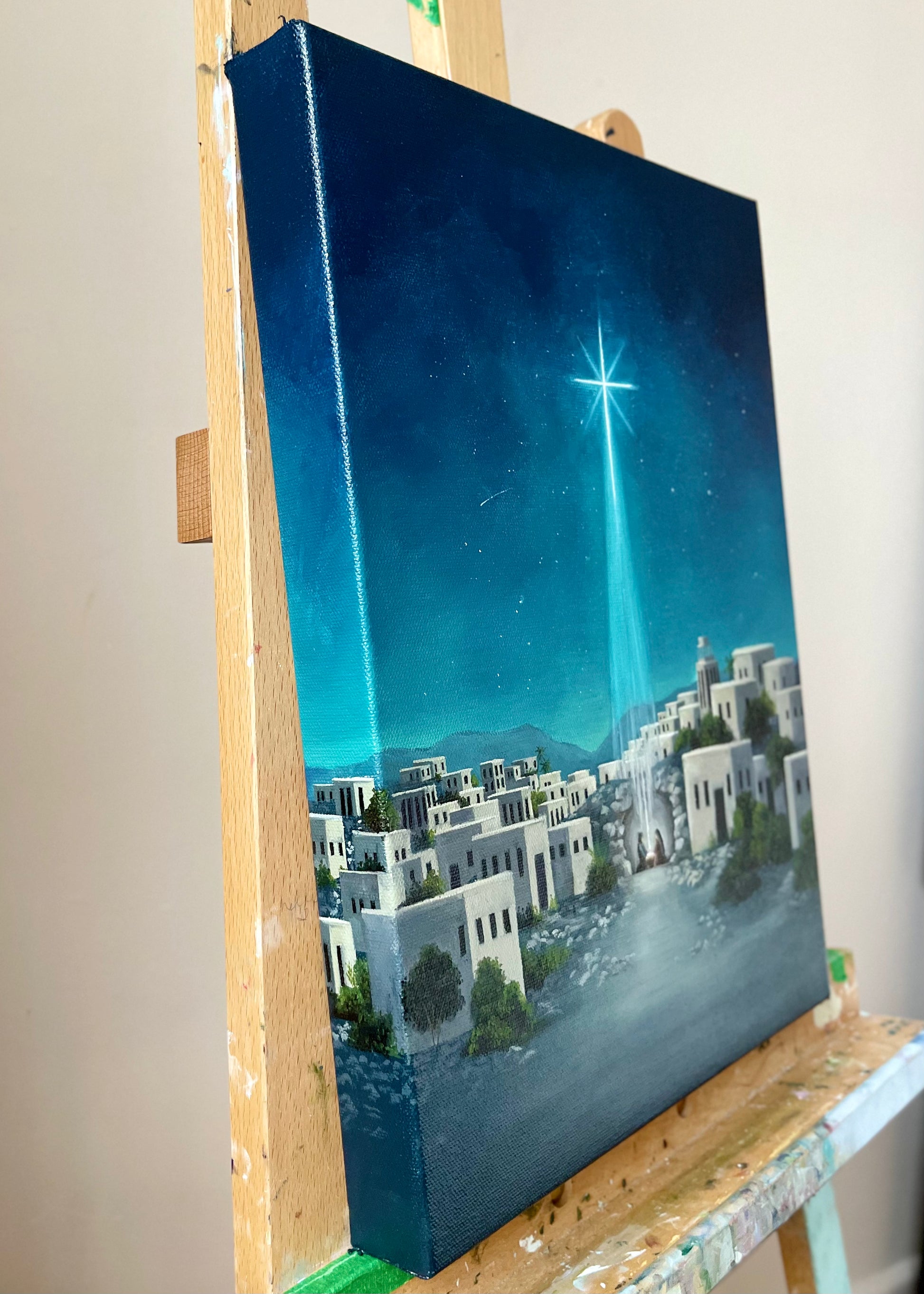Original "Silent Night" oil on gallery-wrapped cotton canvas, 12x16x1.5 inches.